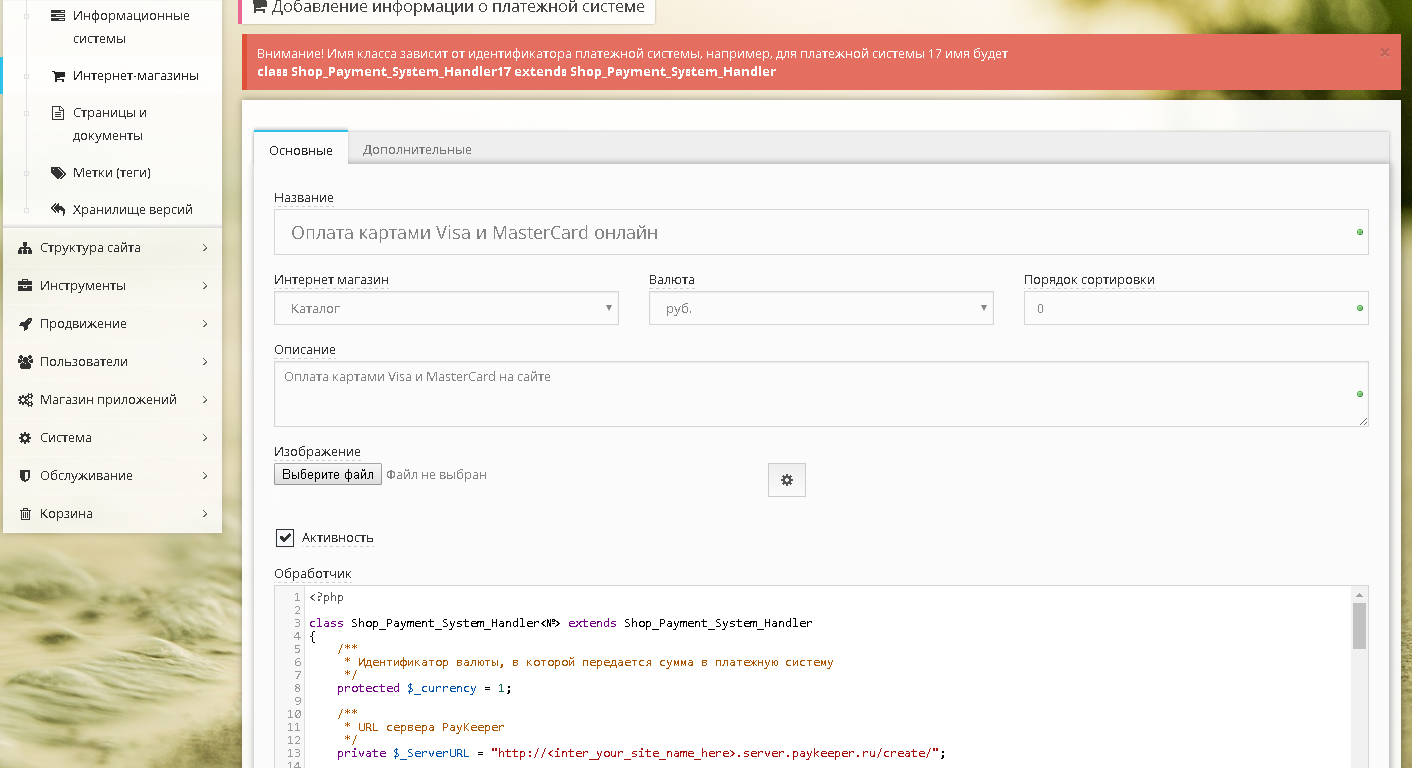Рис 2. Добавление платежной системы.