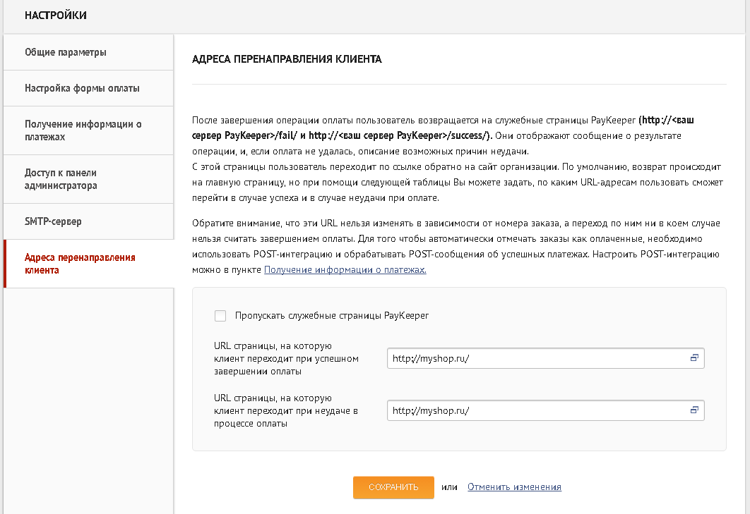 (Например, если Ваш сайт – http://myshop.ru/, то это значение Вы указываете в обоих полях)
