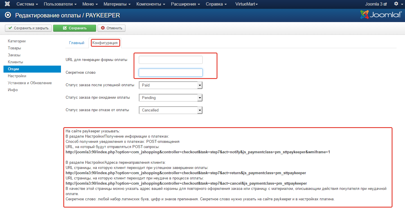 http://Ваш_домен/index.php?option=com_jshopping&controller=checkout&task=step7&act=notify&js_paymentclass=pm_sttpaykeeper&wmiframe=1 - сгенерируйте или придумайте секретное слово. Оно должно совпадать с тем, что Вы указали на предыдущем этапе в настройках способа оплаты.