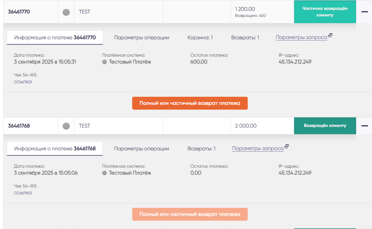- остаток платежа — сумма оплаты за вычетом всех совершенных на данный момент возвратов