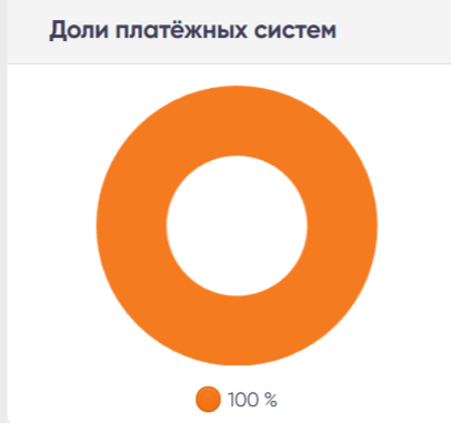 Блок отображает диаграмму процентного соотношения платежных систем, через которые проходили успешные платежи за выбранный период.