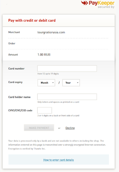 <form method='POST' action='https://demo.psb-processing.ru/create/' > <input type='hidden' name='lang' value='en'/> Full Name: <input type='text' name='clientid' /> <br /> Email: <input type='text' name='client_email' value=''/> <br /> Purchase Amount in Russian rubles: <input type='text' name='sum'/> <br /> <input type='submit' value='Make payment' /> </form> |